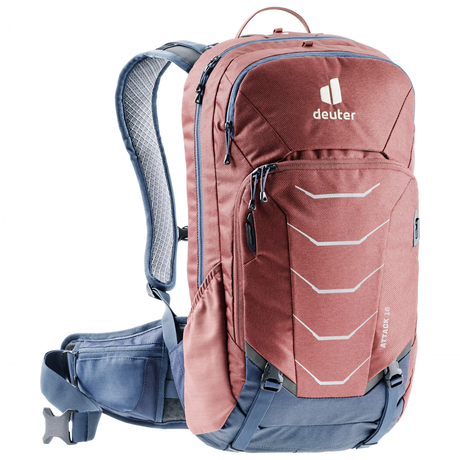 Le modèle Attack 16 de la marque Deuter est fait pour les personnes qui font du VTT ambitieux et recherchent un sac à dos avec une protection dorsale, qui est à la fois confortable et bien ajusté pour les descentes difficiles et les montées dans des passages raides. Le sac à dos a un volume de 16 litres, ce qui est suffisant pour emporter tout le nécessaire pour la route. En plus de son compartiment principal, le sac possède de nombreuses autres caractéristiques pratiques : porte-casque, fixation pour les lunettes, compartiment pour les lunettes et petite poche zippée pour le téléphone portable. Le sac possède aussi une poche frontale avec un grand compartiment pour s’organiser et une poche zippée en filet, ce qui permet de fixer la pompe et de ranger le tuyau du système d’hydratation et des outils.